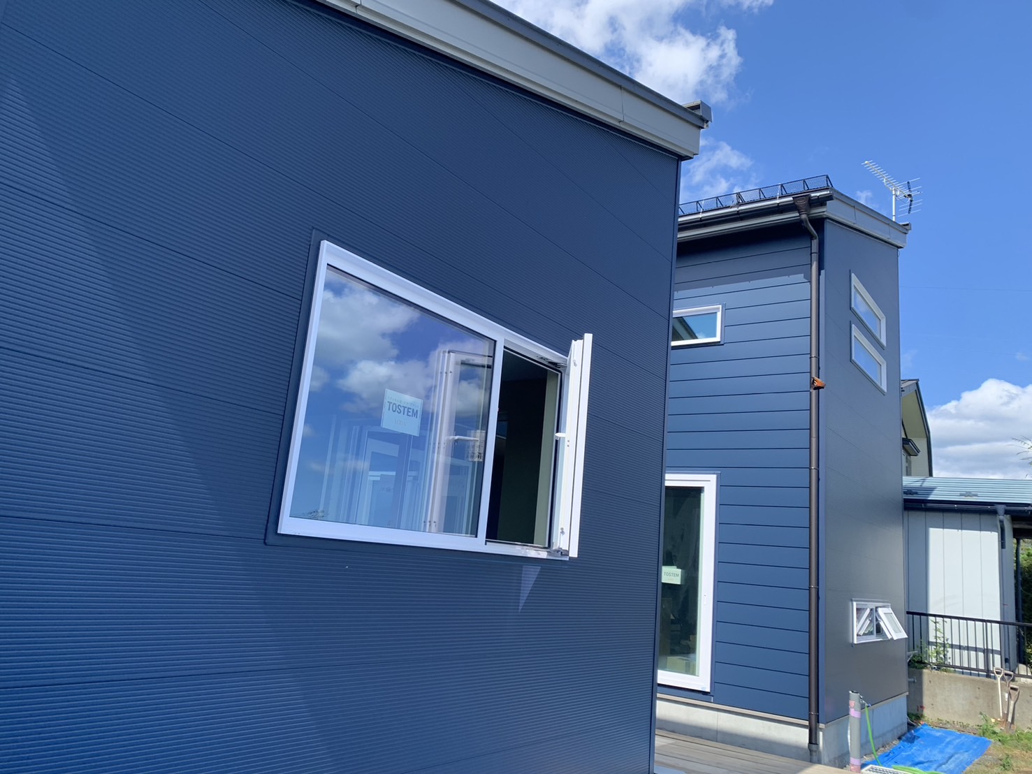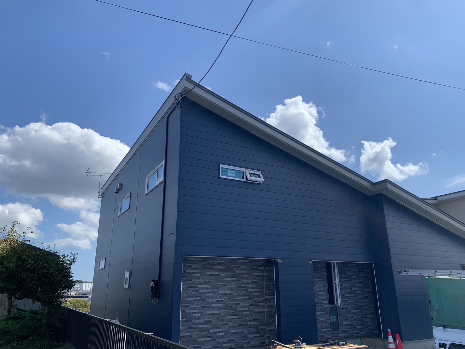5月に基礎工事の状況を報告したっきりなかなかタイミングが合わず、これまでブログにあげる事が出来ていなかった中居林のK様邸・・。そうこうしているうちに外部の仕上げ工事が終わり足場がはずれ建物の全貌が露わになりました。事前に屋根、外壁、窓、軒天、設備配線~機器類の設置などすべてチェックし問題がないことを確認してから足場は解体されます。