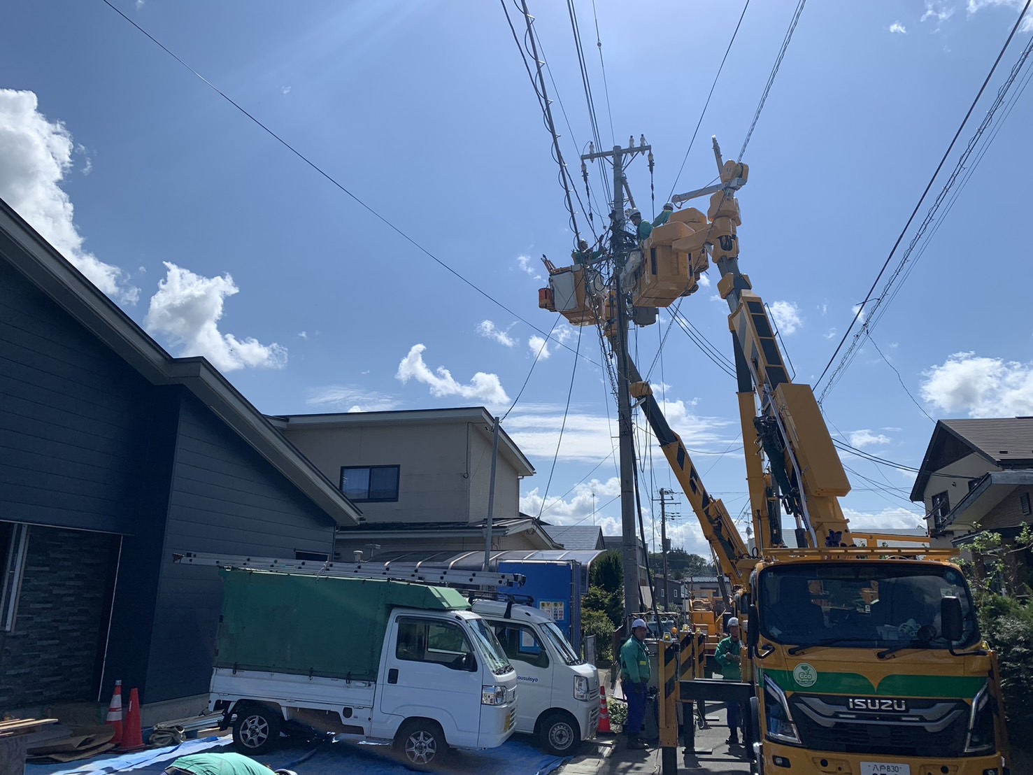 本日は電気を仮設から本設へ切り替える作業をしております↓